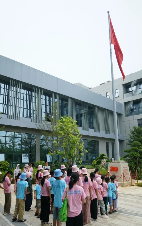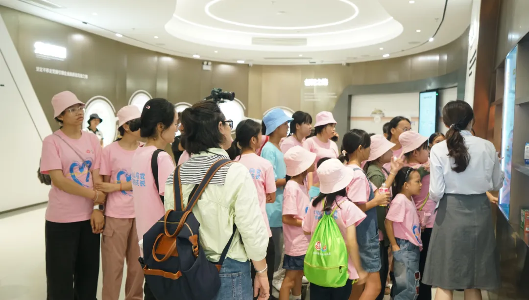 紧接着,孩子们来到了建党百年庆典红旗——070号红旗前。讲解员讲述了尊龙药业集团与庆典红旗的深厚渊源。孩子们听得津津有味,眼中闪烁着对党和国家的热爱与敬仰。